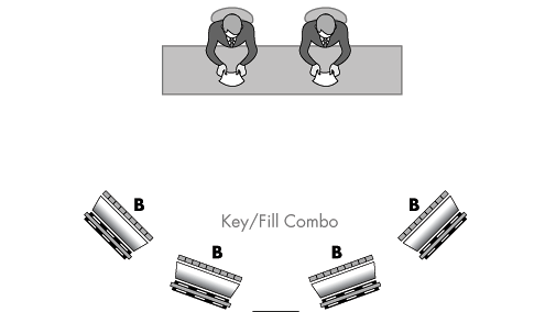 Cross key uses 2 lighting instruments to key a scene, most often involving 2 subjects.